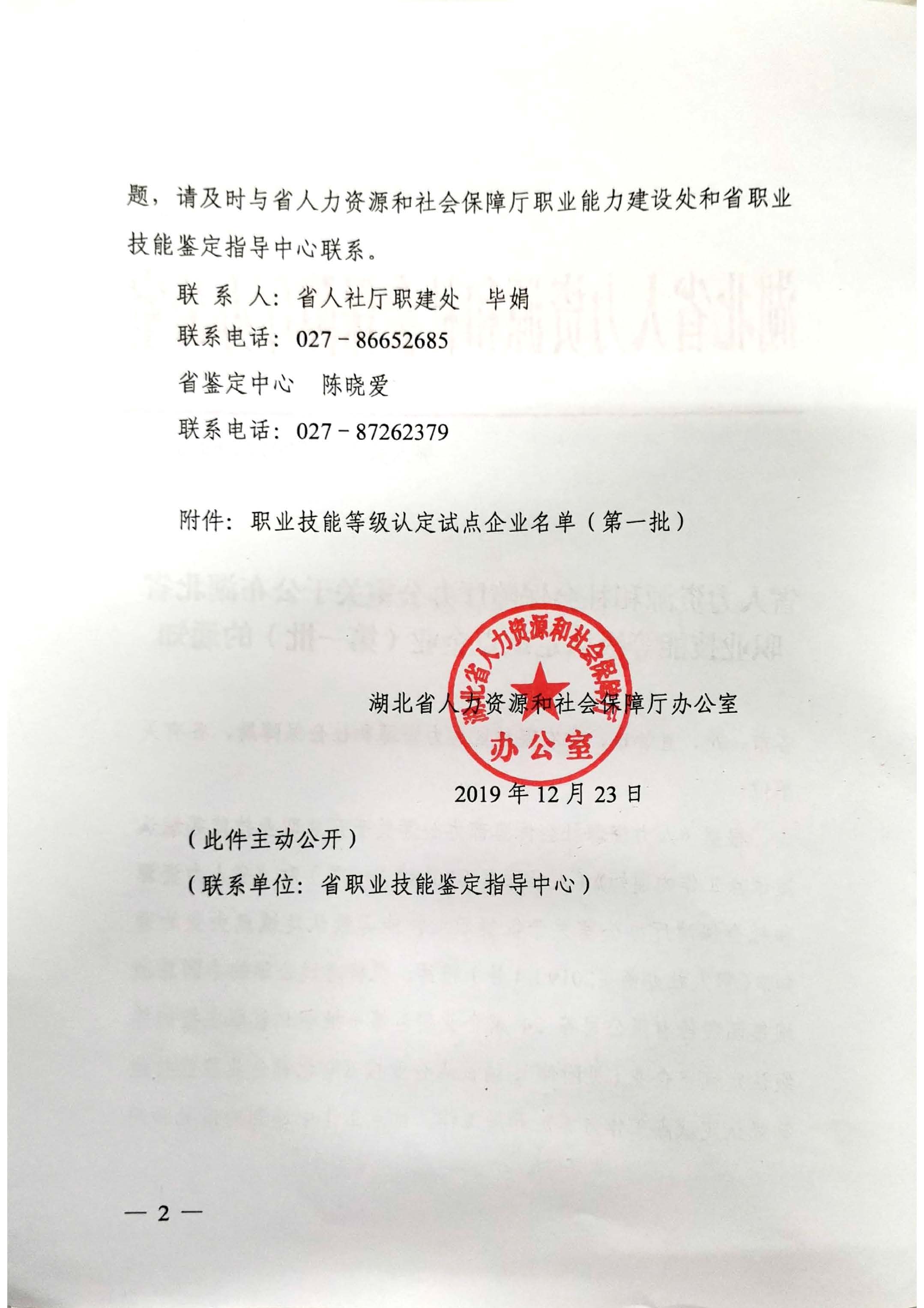 热烈祝贺公司成为湖北省职业技能等级认定第一批试点企业