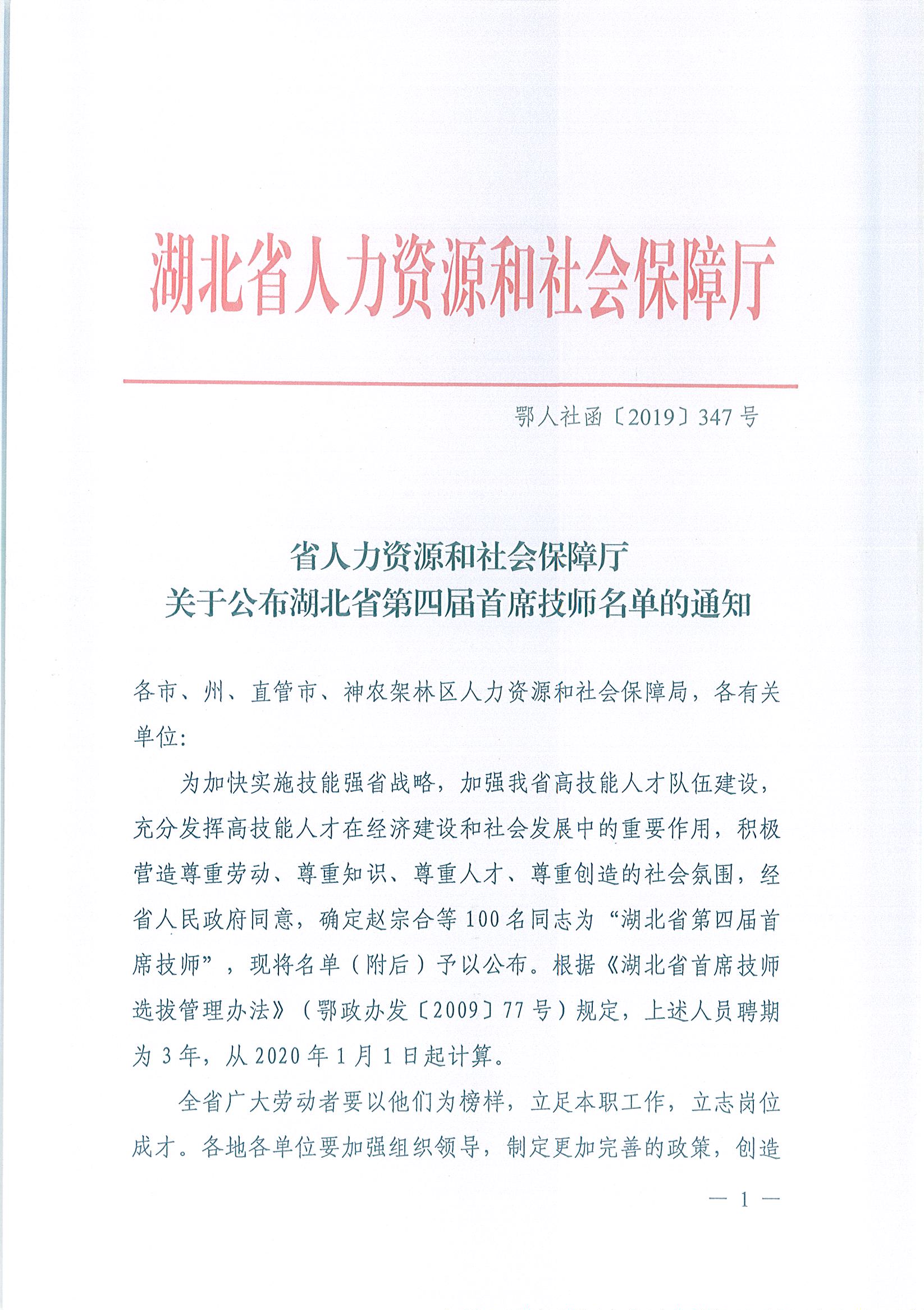 吴林冲被评为“湖北省首席技师”