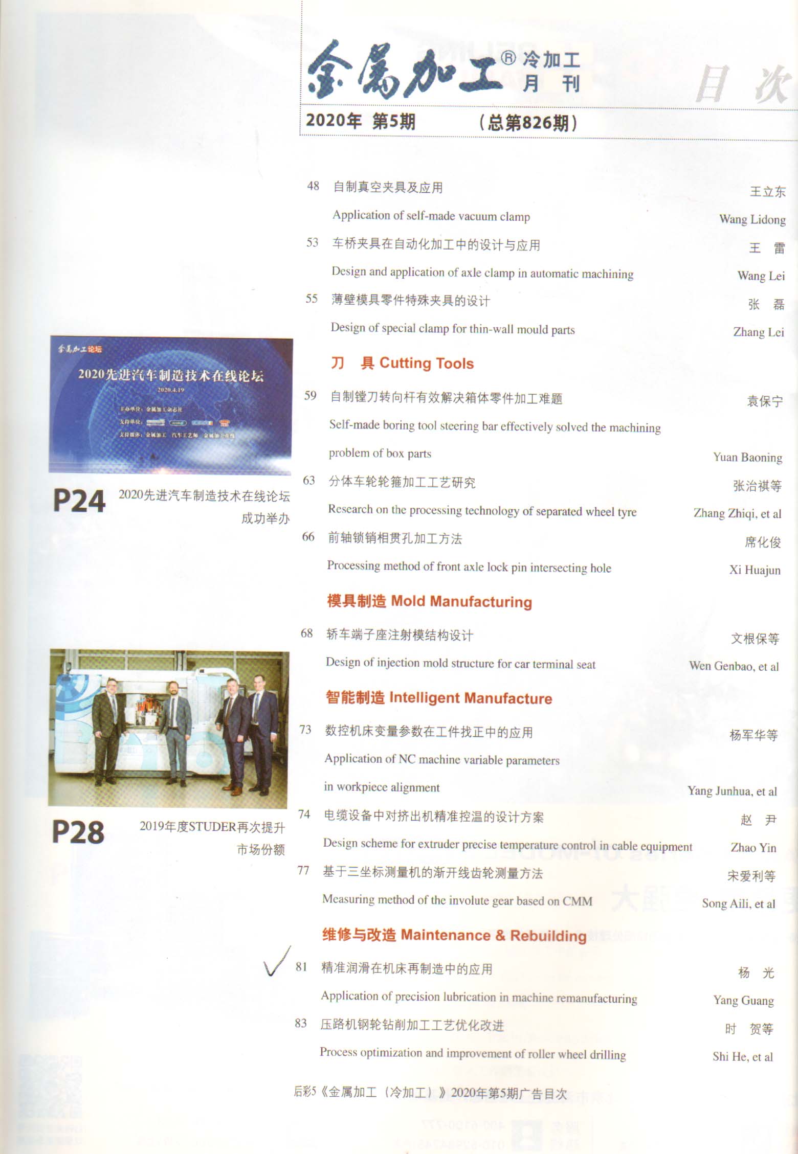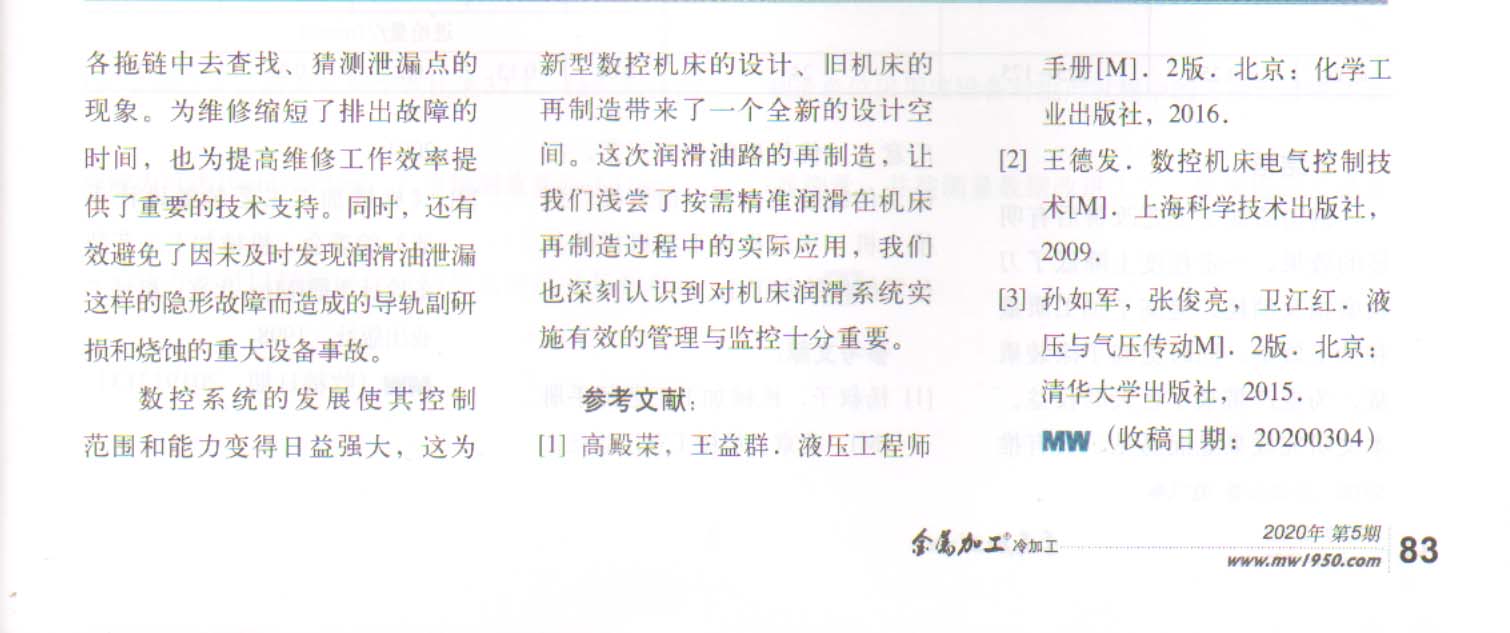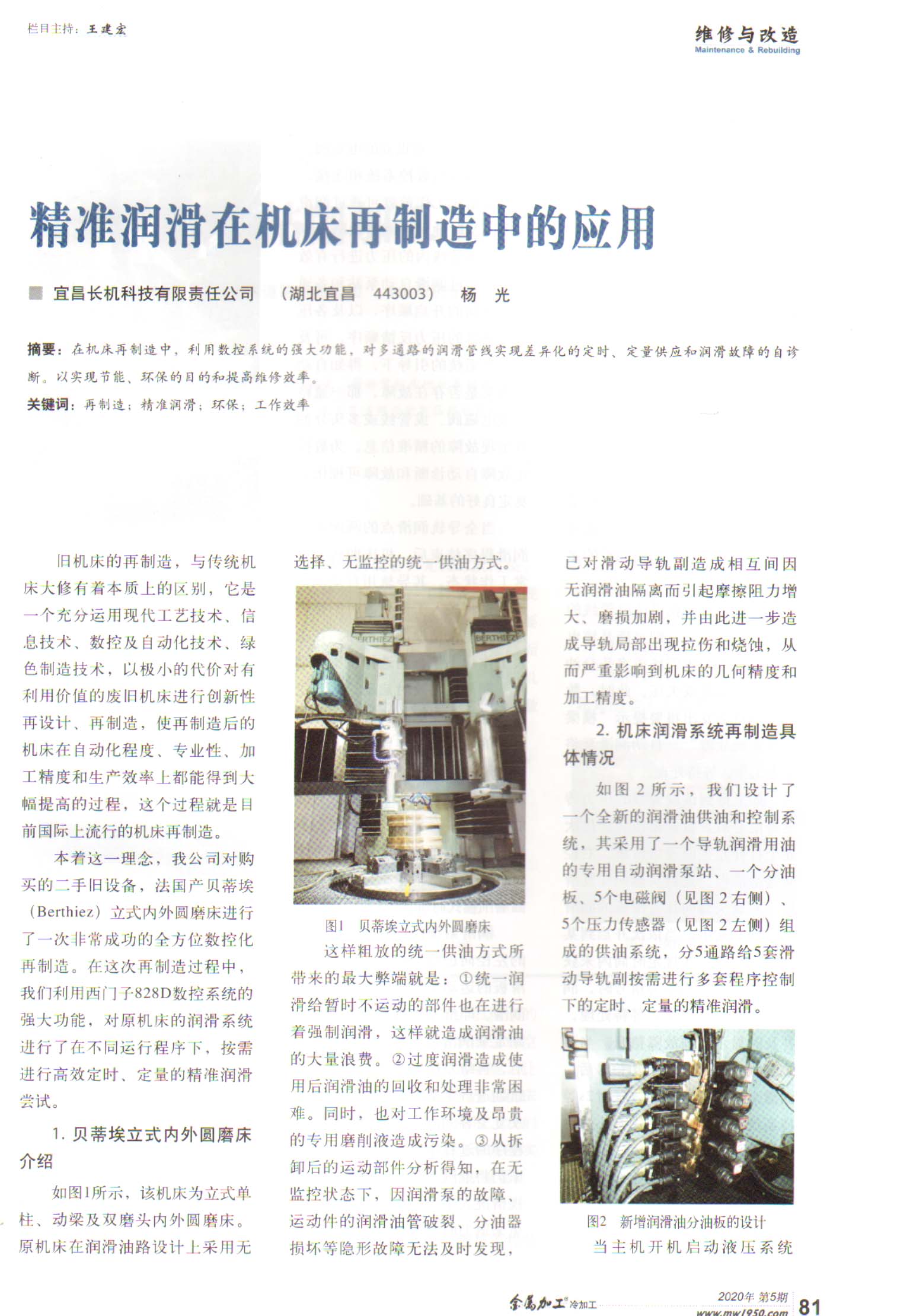 杨光在《金属加工》杂志上发表《精准润滑在机床再制造中的应用》一文
