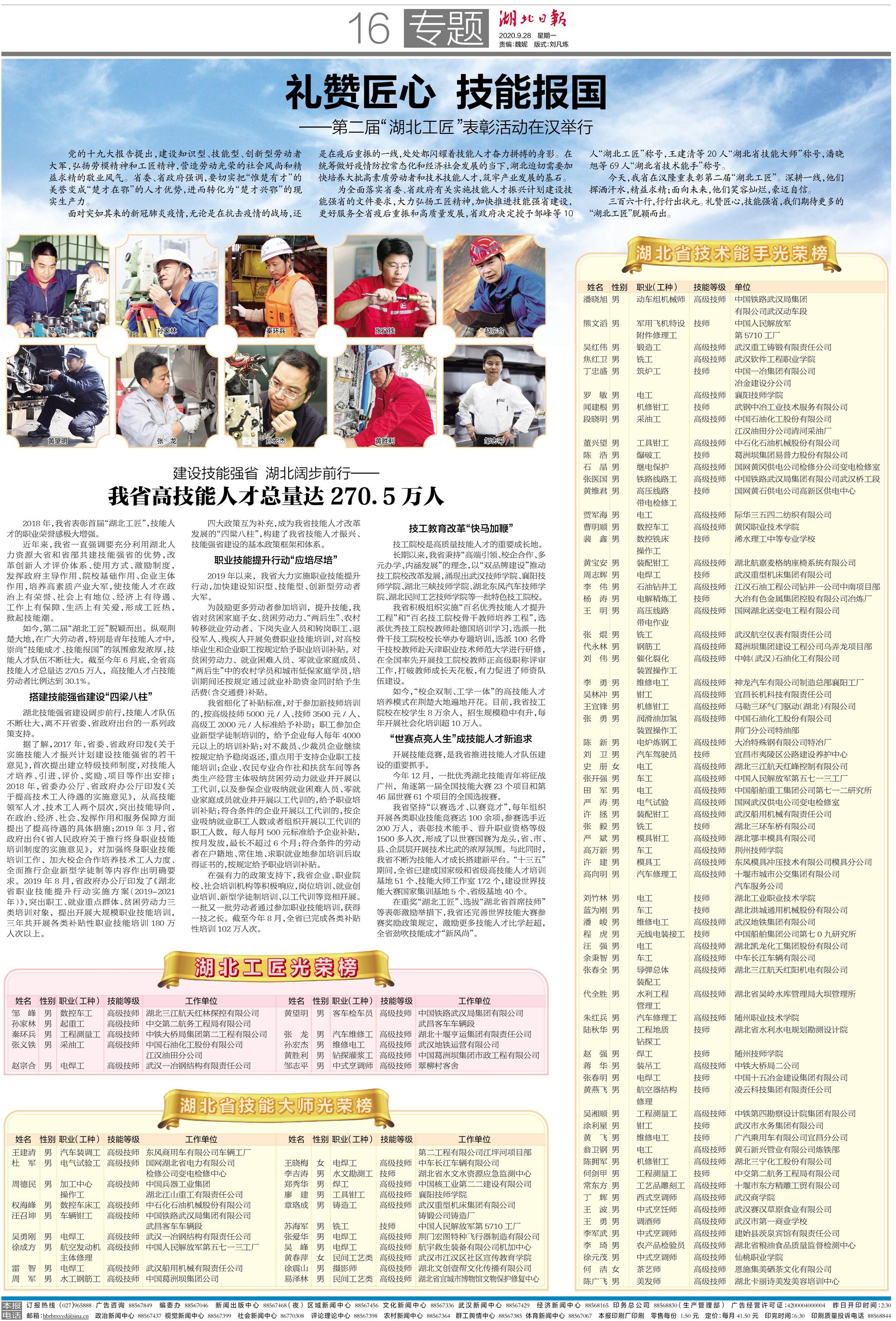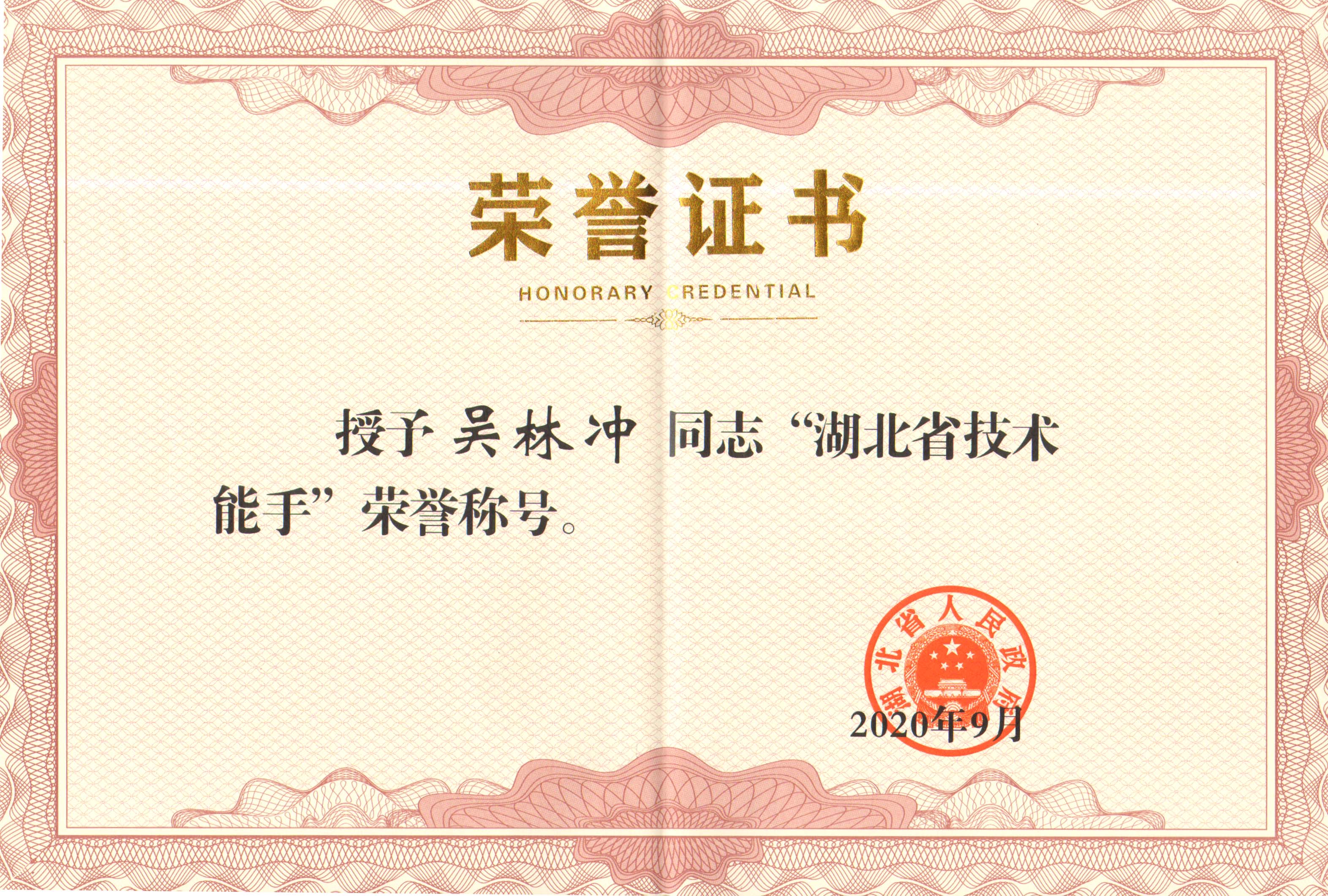 吴林冲被评为“湖北省技术能手”