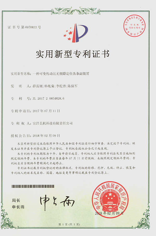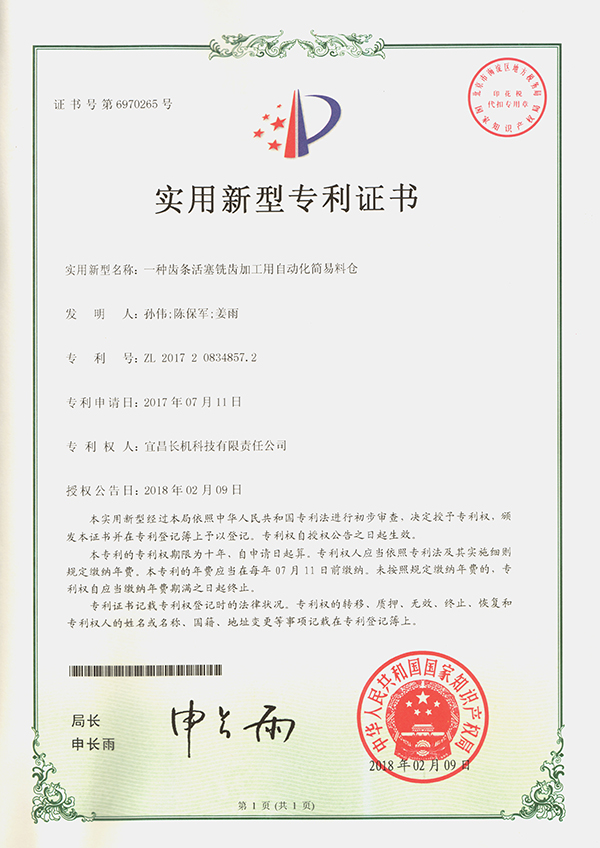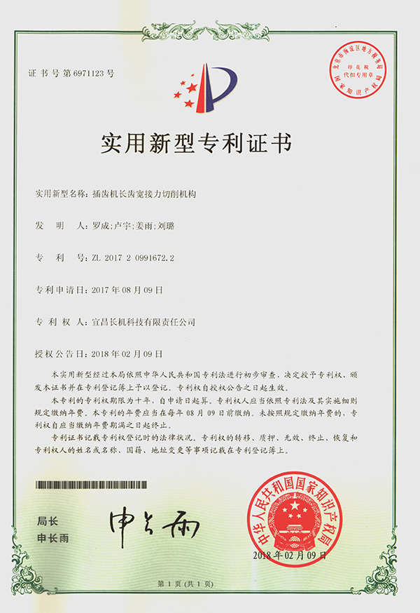 宜昌长机科技公司获一项发明专利、六项实用新型专利。