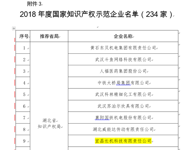 宜昌长机科技荣获“2018年度国家知识产权示范企业”